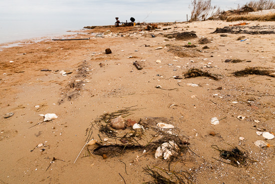 The northernmost portion of Tangier Island is called Uppards. Once home to a store, a school, a church and a collection of homes, the life of Uppards has disappeared, leaving behind one tumbledown trailer and stretches of marsh, sand and beach.