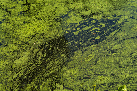 Under water, oxygen is present in dissolved form. When nutrient-fueled algae blooms die, the bacteria that arrive to decompose them use up oxygen in the water, leaving little for fish and shellfish and creating so-called “dead zones.” Increased nutrient pollution leads to larger algae blooms, which in turn create more dead zones.