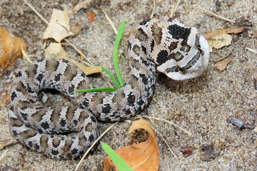 Despite their intimidating act, the hognose snake almost never bites. Their diet consists of small mammals, toads, frogs and other invertebrates. This species can be found in habitats with sandy or gravelly soil throughout the Bay area.