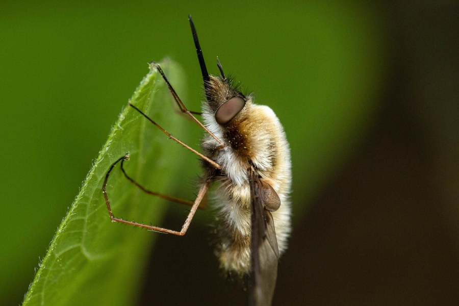 With fuzzy bodies and a long proboscis that looks like a stinger at first glance, the bee fly looks much more like a bee than a typical fly. This imitation allows the fly to deter would-be predators even though they are harmless.