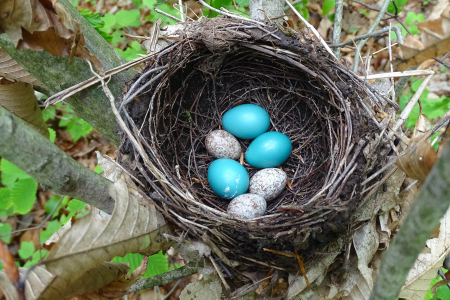 When the tables turn and the wood thrush becomes the prey, their beautiful voices turn aggressive. A wood thrush’s eggs are vulnerable to a variety of predators ranging from chipmunks and raccoons to crows and snakes, while owls and hawks prey on adult wood thrushes. When these predators are near, wood thrushes snap the parts of their bill together to create a siren-like distress signal that repels their aggressors.