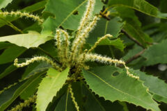 Flowering American chestnut trees will either have only male flowers or both male and female flowers. A chestnut tree rarely self-pollinates, which means that at least two chestnut trees need to be near each other for viable nut production. Depending on latitude and elevation Chestnut trees bloom from mid-June to early July.