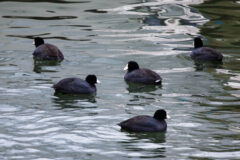 When threatened, the coot will splash in the water to scare away nearby predators. The adult coot’s most common predators are typically large birds of prey such as ospreys and bald eagles. However, eggs and young coots (called “nestlings”) are vulnerable to a variety of smaller predators, including raccoons, skunks and snapping turtles.