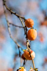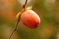 The American persimmon tree can grow to be 60 feet tall but normally doesn’t reach more than 20 feet tall. The trunk and branches are thin with grey-brown bark that is said to resemble reptile scales. The oval leaves are about 6 inches in length and alternate down the stems. In spring, the tree develops small, white tubular flowers. In the fall, orange one-inch to two-inch fruits develop.