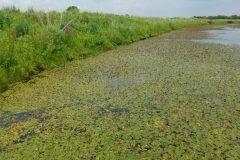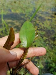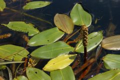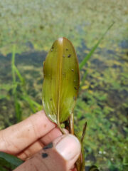 Also known as longleaf pondweed, American pondweed is considered a nuiance species. It is a rooted, perennial herb that has both submerged and floating leaves.