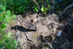 Eggs and ducklings are preyed upon by mammals and birds such as foxes, raccoons, skunks, hawks and crows.