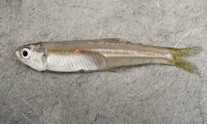 The bay anchovy is a small, translucent fish that lives in schools throughout the Chesapeake Bay. It is the most abundant fish in the Bay.