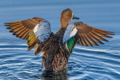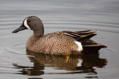 This small dabbling duck is named for the powder-blue patches on its forewings. It can be found in the marshes and wetlands of the Chesapeake region in spring and fall.