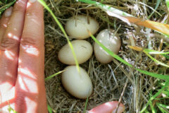 Long-tailed weasels often consume blue-winged teal eggs. Female teals are susceptible to predation by raptors, such as bald eagles and great horned owls, when nesting. Foxes, raccoons and skunks also prey on blue-winged teals.