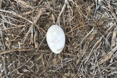 Breeding typically begins at age three to five years. Pelicans organize in large colonies on the ground, in bushes or in the tops of trees. The male brings nest materials to the female, who builds the nest. Females usually lay two to three chalky white eggs between March and May. Unlike most birds, pelicans incubate their eggs with their feet. Parents share the responsibility of incubating the eggs, which hatch in about a month, and raising the young. Pelicans are born blind, featherless and entirely dependent on their parents. First flight usually occurs around 75 days old.