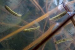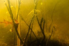 Eastern tiger salamanders move to their breeding ponds in late winter or early spring. After courtship, females will lay eggs and attach them with twigs, grass stems and leaves to the bottom of the pond. An egg mass can contain up to 100 eggs.