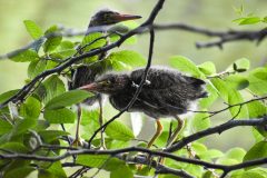 Crows and snakes prey upon heron eggs. Large birds of prey may eat adult green herons.