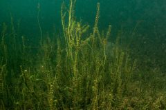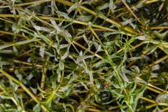 Hydrilla is a nonnative underwater grass that grows in freshwater portions of the Chesapeake Bay and most of its tributaries. It has long, branching stems with small, straight or lance-shaped leaves.
