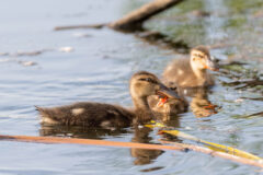 Common waterfowl predators in North America include red fox, raccoon, owls, hawks, large gulls, mink, weasels, skunks, coyotes and crows.