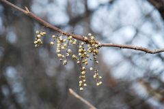 In the fall, white berries form on the poison ivy plant and remain throughout the winter. Come spring, untouched berries will fall and disperse their seeds near the parent plant. Berries that are eaten by birds allow for seeds to travel long distances and be dispersed after exiting the bird's digestive system. As a perennial, poison ivy will continue to return, year after year.