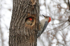 Known predators of the red-bellied woodpecker include hawks and other birds of prey, snakes and house cats.