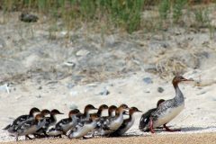 These birds do not reproduce in the Bay region, but nest and breed from the Great Lakes to the Arctic. They return to the same nesting site every year. Only 50 percent of all red-breasted mergansers are believed to survive winter and migration each year. They can live as long as nine years.