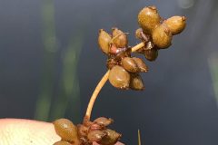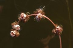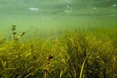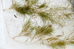 Sago pondweed is an underwater grass with bushy clusters of thread-like leaves that grow alternately along slender, branching stems. It grows in fresh to moderately brackish waters throughout the Chesapeake Bay watershed.