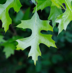Scarlet oak has showy red leaves during fall and provides food to wildlife through its acorns.