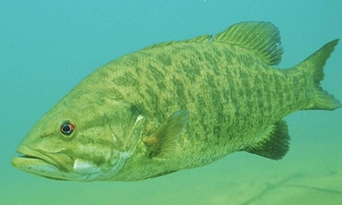 Adult smallmouth bass can grow up to 26 inches long, but most are 8 to 22 inches. Their elongate body is pale brown or olive green, while their belly is yellow-white in color. The fish's body features a number of small, dusky brown blotches and sometimes five to 15 indistinct dusky lateral bars. Unlike the largemouth bass, the lower jaw of its moderate-sized mouth does not extend past its eye.