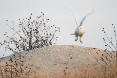 The female builds its nest by scraping out a shallow hole on the ground and pairs may reuse the nest site for many years. Snowy owls will aggressively defend their nests against predators.