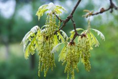White oaks, like all other oak trees, are wind-pollinated. Both male and female flowers grow on the same tree; the male flowers are yellow-green drooping clusters, while the female flowers are small, red and petal-less. The trees can grow one to two feet in height each year.