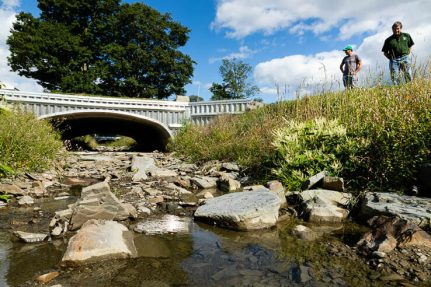 Over time, the riprap kept vegetation from growing in along the banks and the new trapezoidal shape of the stream caused erosion issues. The height of the culverts from the water also made it difficult for fish like brook trout to move through Kinsey Run.