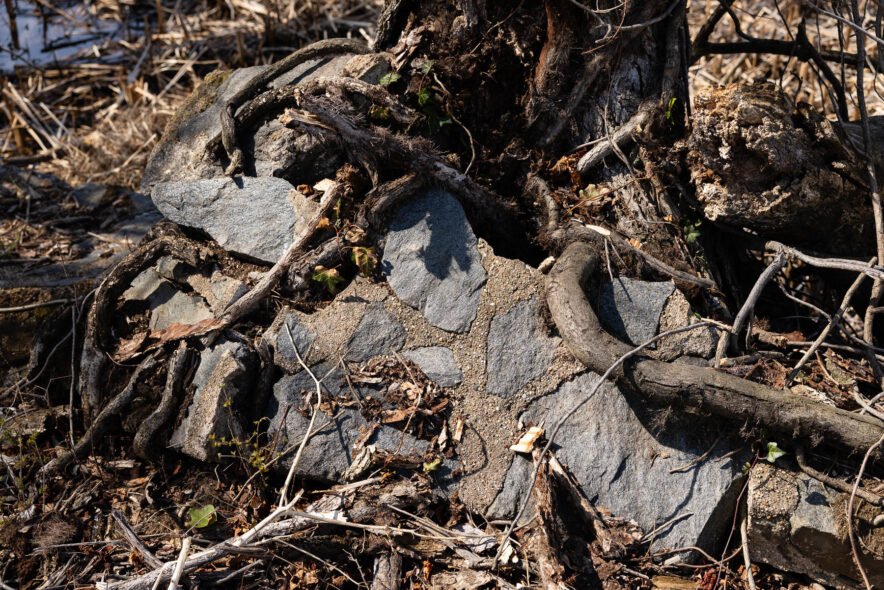 As a crisp wind blew on that March morning, the River Terrace volunteers stepped down from the now-crumbling sea wall into an 11-acre fringe wetland built in 2003. Over the decades, non-native invasive species have taken over, displacing much of the native plant cover that support a wider range of wildlife. By 2023, phragmites, a tall invasive grass, occupied as much as 40% of the wetland. Bush honeysuckle, as well as invasive vines like porcelainberry, occupied about 600 feet of upland area along the riverbank.