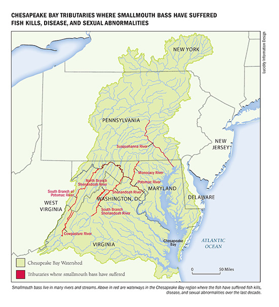 Over the past decade, smallmouth bass in five Chesapeake Bay tributaries have suffered from fish kills and perplexing illnesses—and nutrient pollution could be to blame.