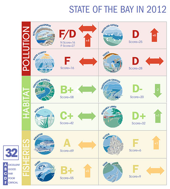 While the Bay’s score of 32 on a one-to-100 scale falls short of what the Foundation would like to see—70 points, or an “A+”—this does mark a progression of one point since the report was last issued in 2010, and of four points since 2008.