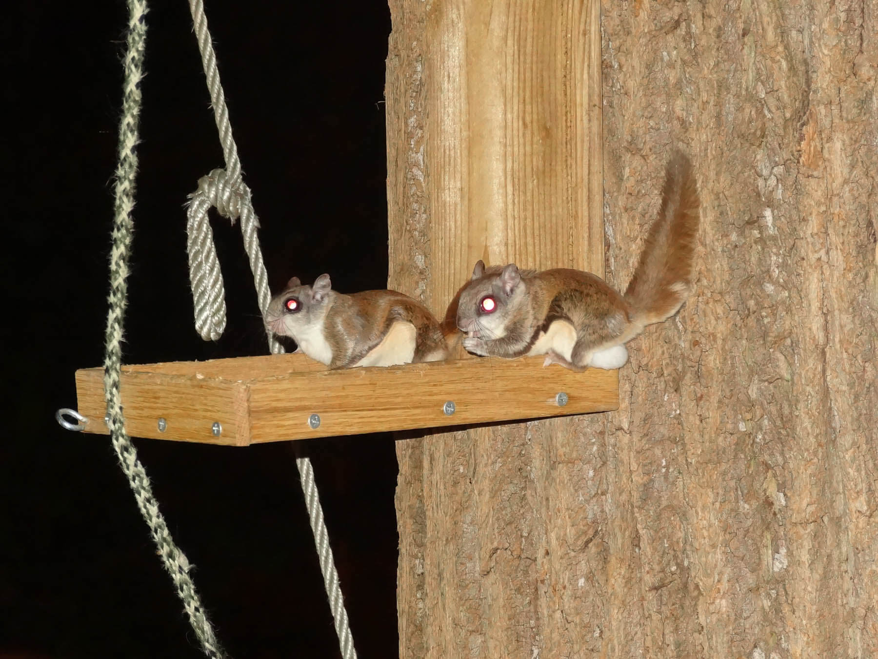 Southern flying squirrels (Glaucomys volans) visit a feeding platform in Wheaton, Va., on May 1, 2021. (Photo courtesy of msur/iNaturalist CC BY-NC)