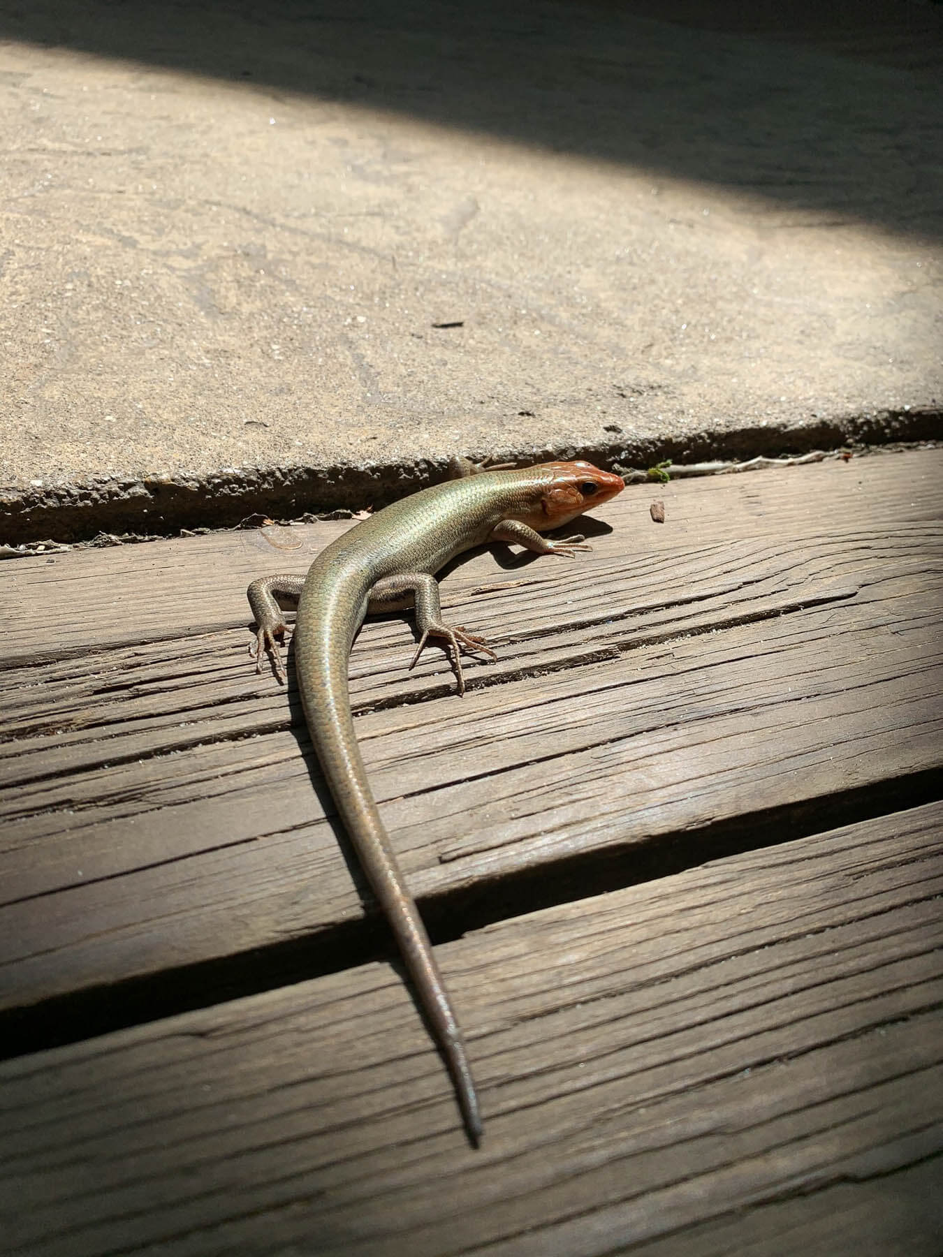 A broad-headed skink (Plestiodon laticeps) is seen in Virginia Beach, Va., on April 30, 2021. (Photo courtesy of mermaid_hales/iNaturalist CC BY-NC)