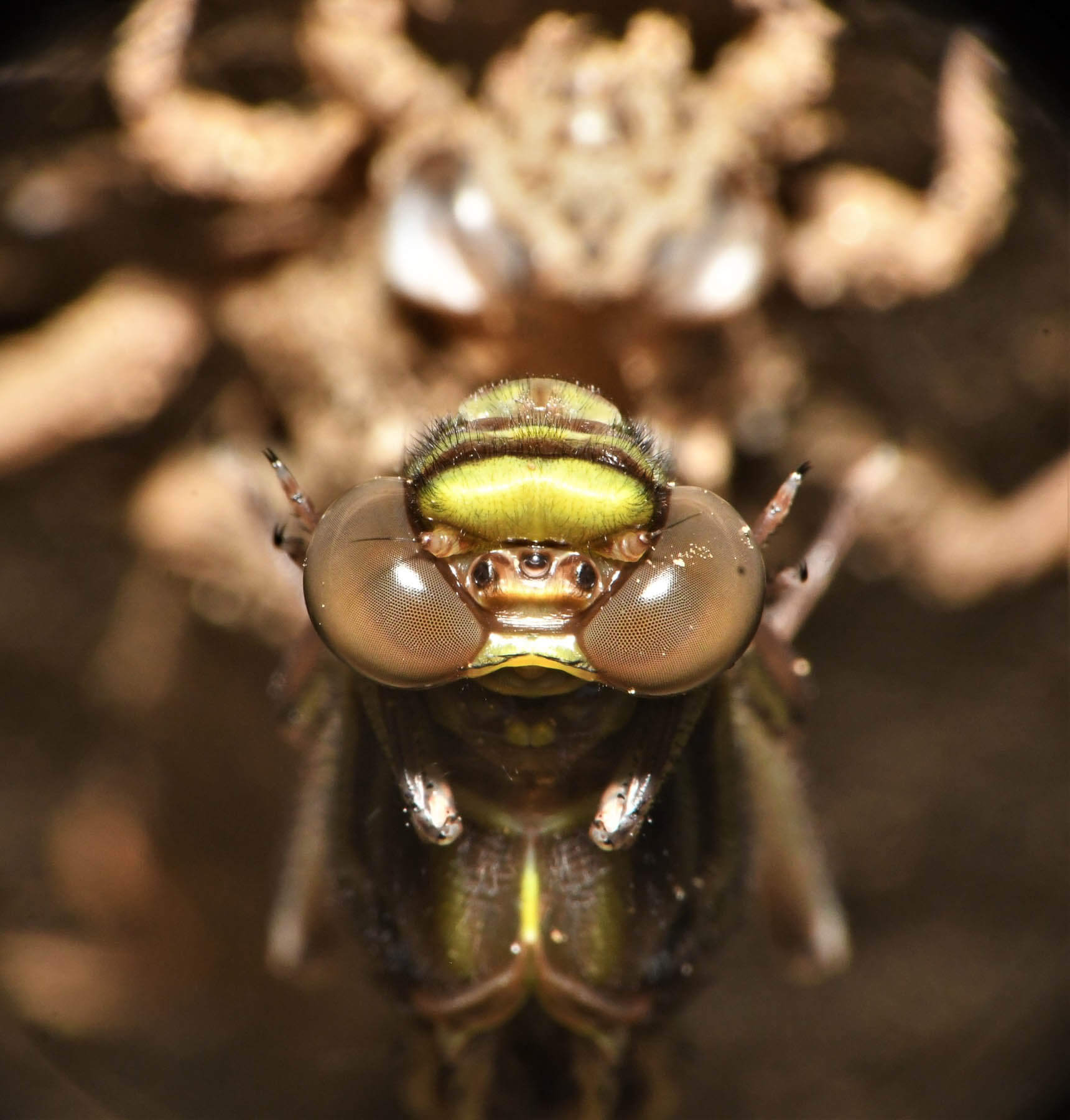 A cobra clubtail (Gomphurus vastus), a type of dragonfly, emerges as an adult from its shed skin near Michaux, Va., on May 1, 2021. (Photo courtesy of Joe Girgente/iNaturalist CC BY-NC)