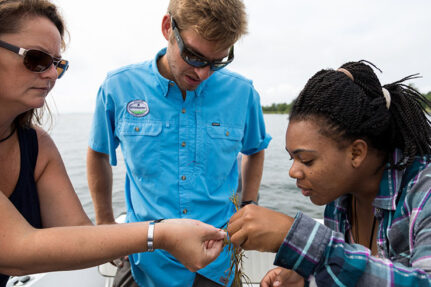 Underwater grasses—also known as submerged aquatic vegetation, or SAV—are critical to the Chesapeake Bay ecosystem. They absorb nutrients and trap sediment to maintain clean and healthy waters, slow wave action to help reduce shoreline erosion, provide food to small invertebrates and migratory waterfowl, and shelter fish and blue crabs.