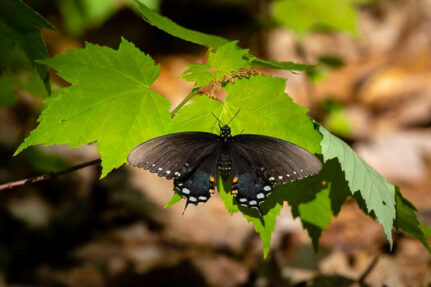 Pharsalia Woods State Forest is full of unique species including the carniverous pitcher plant (Sarracenia purpurea). The National Audubon Society listed it as an Important Bird Area due to the unique preserved habitat that serves as a home and migrating territory for rare species like the sandhill crane (Antigone canadensis). Visitors with mobility impairments have the opportunity to see some of these unique species on the accessible boardwalk created in 2018. The boardwalk leads visitors from the parking lot through mature forest to an overlook above the 25-acre Round Pond wetland complex. Two benches are at the end of the boardwalk so visitors can relax and look for wildlife in the wetland.