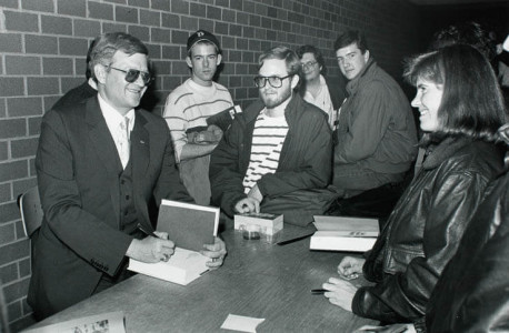 Perhaps "Eight literary figures", but if you include Clancy, it's seven writers and a hack. Incredibly, there is no mention of John Barth.
