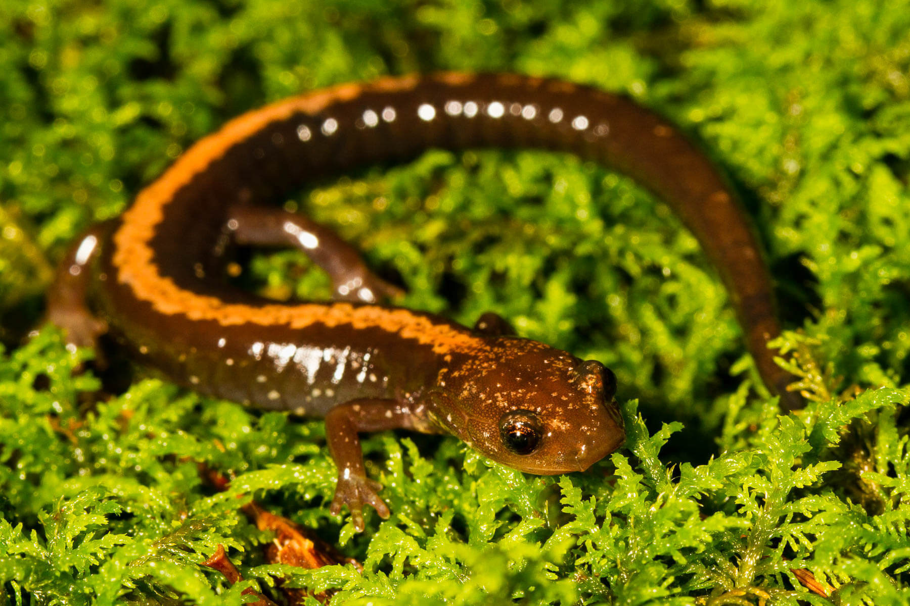 This small, woodland amphibian is known to live in just three mountains, all of which—as evidenced by the salamander’s name—lie within the boundaries of Shenandoah National Park in Virginia. The Shenandoah salamander used to be more widely distributed, but competition with redback salamanders has confined the Shenandoah salamander to the steep, rocky, north-facing slopes of Hawksbill Mountain, The Pinnacles and Stony Man Mountain.