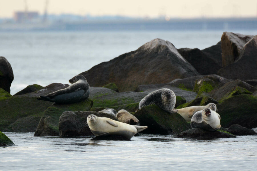 Harbor seals are the most common type of seal found in the Bay, although grey seals, harp seals and hooded seals are occasionally spotted. Seals are often seen by the Chesapeake Bay Bridge Tunnel and along Virginia’s Eastern Shore, although they’ve been occasionally spotted in the Maryland portion of the Bay as far north as Baltimore. In the past few decades, the number of visiting seals has increased dramatically. Fishermen and scientists have noticed a change from seeing just a few in a season to dozens every winter. The increased number of seals even led the Virginia Aquarium & Marine Science Center to start offering seal spotting boat tours during the late winter months.