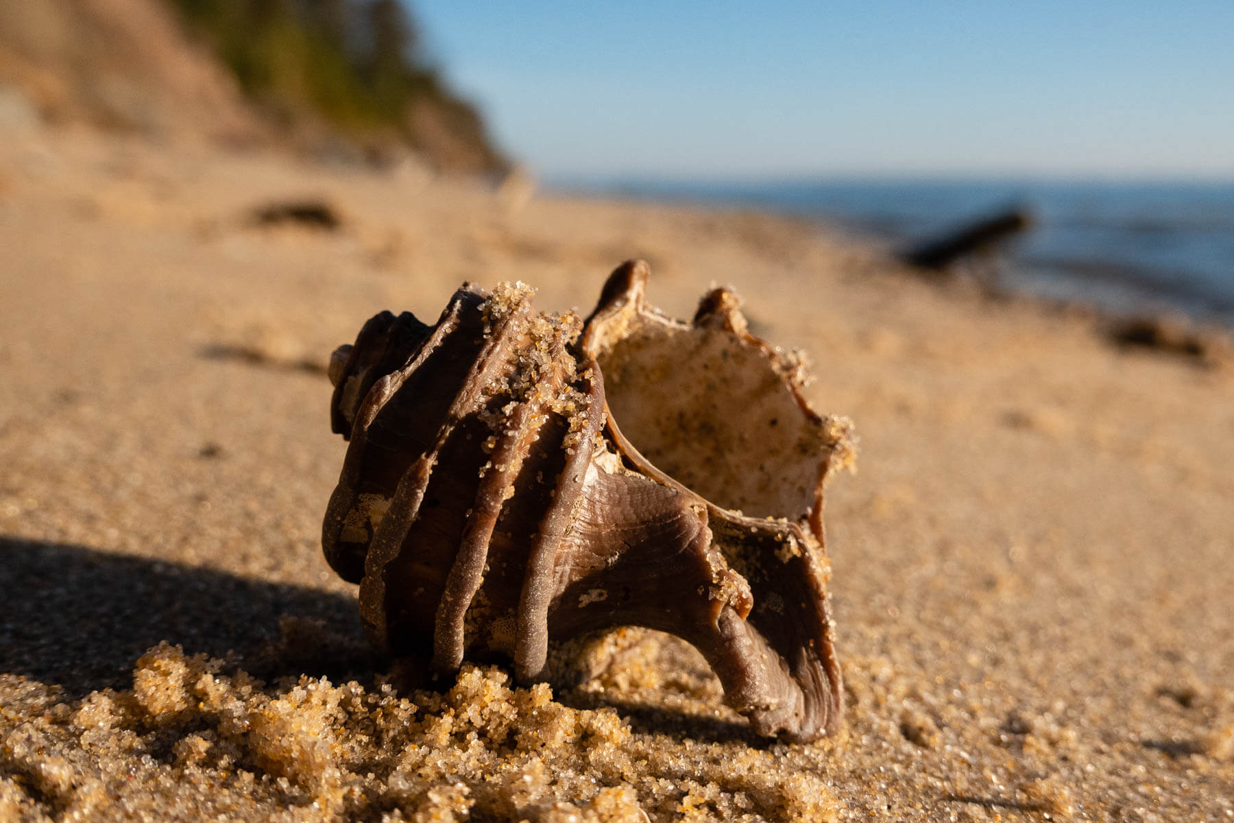 “On this particular beach, you get better preservation of these Ecphora shells than most other places,” said Victor Perez, assistant curator of paleontology at Calvert Marine Museum. According to Perez, the shells tend to be fragile while they are still in the clay, but if they dry out naturally they are more likely to remain intact. Driftwood Beach also has a less rocky shoreline than other beaches along the Calvert Cliffs, so the shells are broken up by the waves less often.