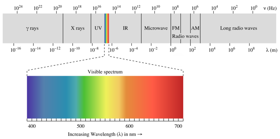 All objects, whether natural or manmade, reflect energy from the sun that can be measured on the electromagnetic spectrum (seen below). Only a small range of the energy along the electromagnetic spectrum is visible to the human eye (e.g., light emanating from a lamp); the sensors described above detect other portions we cannot see.