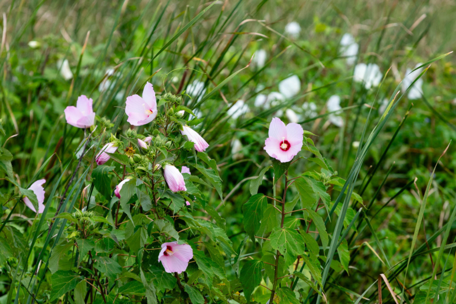 When male rose-mallow bees are ready to mate, they rest on hibiscus flowers and wait for foraging females to stop by, aggressively fending off any other bees that come close. That’s because rose-mallow bees almost exclusively feed on hibiscus flowers, like the native rose mallow. This plant prefers marshy areas so it might not be a good choice for a typical yard or garden, but it can be great for properties near the water. The rose mallow is mostly found in the coastal plain of Maryland and Virginia and the upper Piedmont Valley.