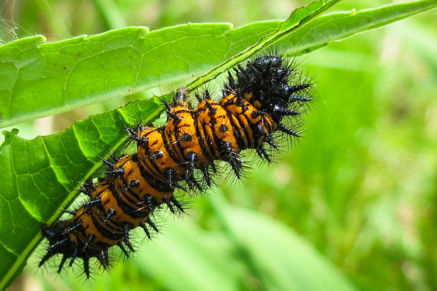 Like monarch caterpillars, Baltimore checkerspot caterpillars try to make themselves as unappetizing to birds as possible. The butterfly’s caterpillars feed almost exclusively on white turtleheads because they contain a chemical that makes the caterpillars taste bad to birds. As the Virginia Native Plant Society’s 2024 Wildflower of the Year, white turtlehead is an important plant that is needed to support our local Baltimore checkerspot population. Home gardeners can try planting white turtlehead in moist areas.