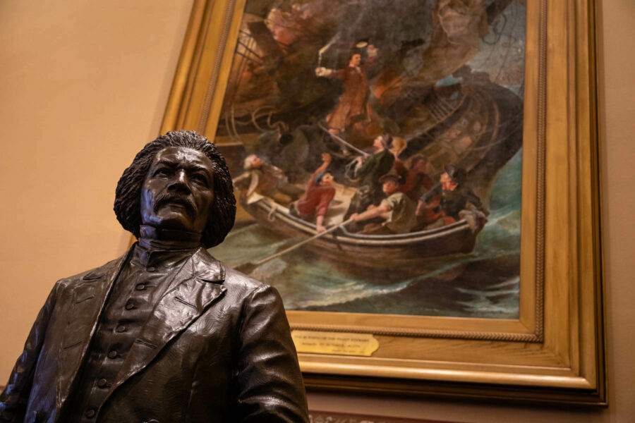 Two pillars of abolitionism now stand at the Maryland State House in Annapolis. Cast in bronze and positioned on each side of the Old House of Delegates Chamber, statues of Harriet Tubman and Frederick Douglass were unveiled in early February.
