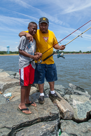 Fishing is the Gilliams’ favorite activity at Sandy Point, but Darius also enjoys the time and space that it gives him to play with his brother and sister. Moses explains: “I’ve lived around the Bay since 1986. To me, Sandy Point State Park provides a safe atmosphere. I feel relaxed here, like nothing [bad] is going to happen. This is a good thing for the family. It’s a good environment. It takes the stress away just to relax and soak up the sun.”