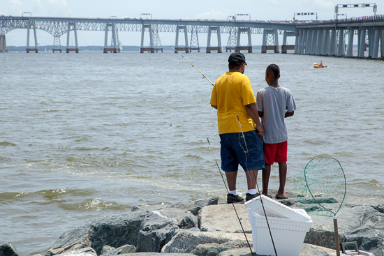 Luis Diaz of El Salvador and Maria Shemiakina of Russia fish right off of the rock jetties almost every weekend. “I mean look,” Luis said. “We’ve got our fishing rods, we’ve got our watermelon and we are going to stay here on the Bay for maybe three hours or longer. We do this almost every other day! Where else can you go in Maryland if you like sport fishing and hanging out by the water? This is the best.”