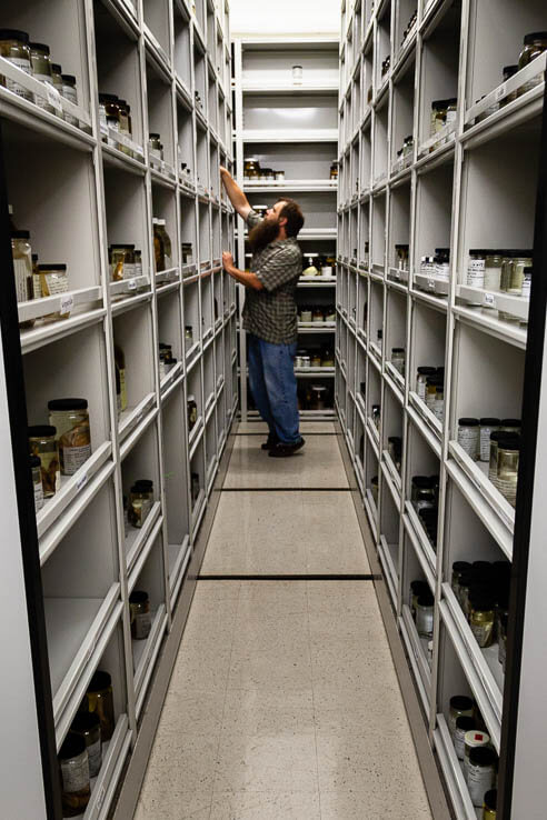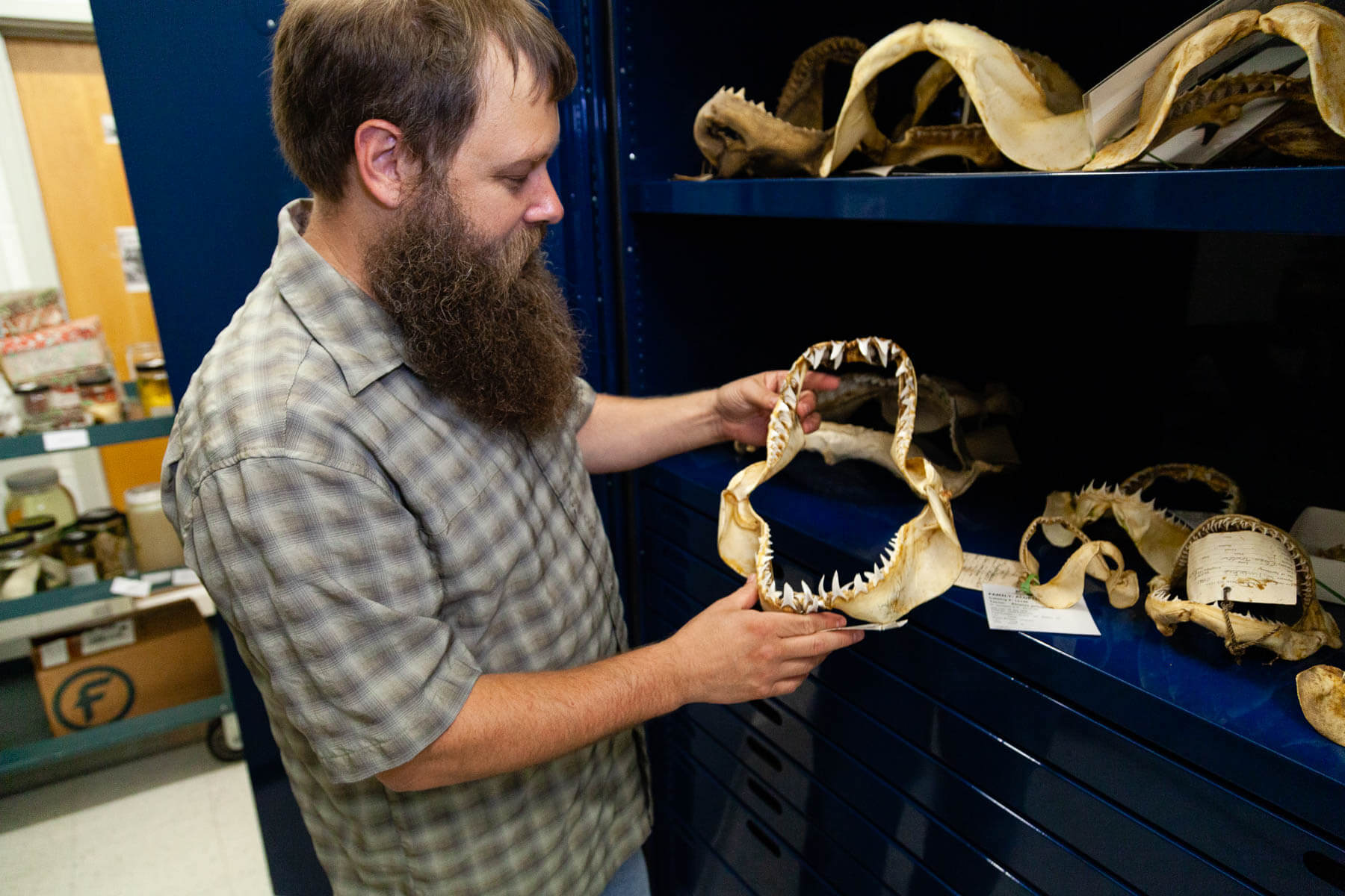 The Nunnally Ichthyology Collection at the Virginia Institute of Marine Science (VIMS) contains more than 100,000 freshwater, estuarine and marine fish specimens for use in research and education. The collection is curated by Eric J. Hilton, an associate professor of marine science who has spent a great deal of his life around collections of fish and reptiles. But this one, he says, is unique: after taking on “orphaned” specimens from two other laboratories, VIMS has become the only institution to actively maintain a collection of Chesapeake Bay and mid-Atlantic fish.
