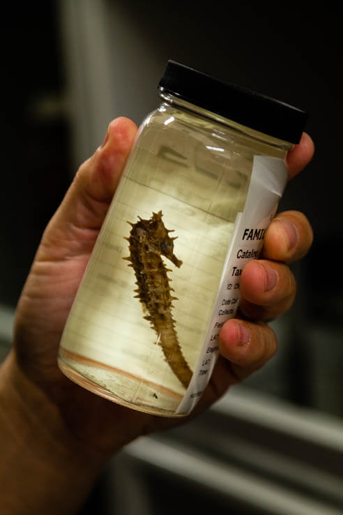 Each jar is given its own catalogue number that will follow the specimen far into the future. “With that [catalogue] number comes species identification, and all of the attributes of when and where that fish was caught and how it was caught,” Hilton said. “[The number] is entered into a catalogue that is accessible to people throughout the world.”
