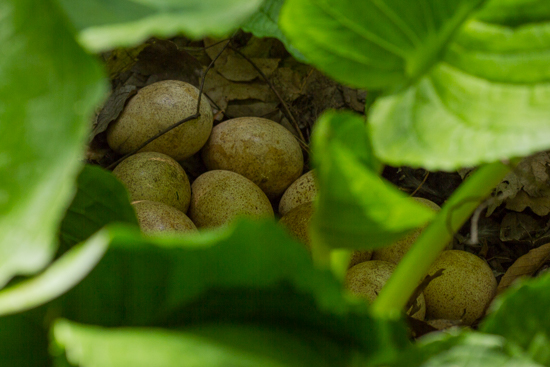 Carter’s woods are home to charismatic fauna, too, including 30 species of mammals and 85 species of birds. Because so much of the property is forested, it serves as suitable habitat for “forest interior dwelling” birds, or those birds that need the moderate temperatures and light levels found deep within the woods. Carter has spotted pine warblers, prothonotary warblers and ovenbirds, but on our walk we spotted a bird that was much bigger and a little less particular about its habitat: a female wild turkey on her nest in a grove of skunk cabbage.