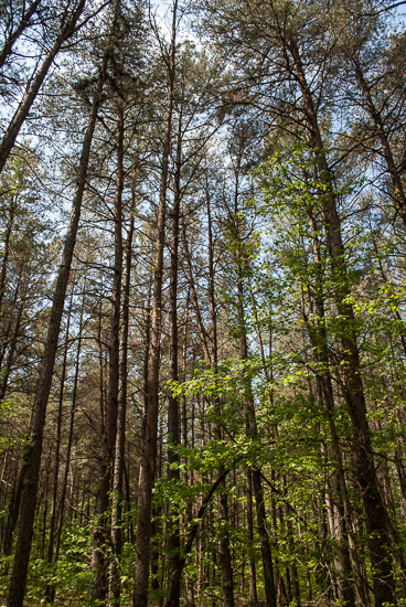 Then there are the reptiles and amphibians. Carter has counted 30 species of these, from the tree and wood frogs that favor damp habitat to the broad-headed skink and Eastern fence lizard that like forests with abundant leaf litter. Leaves that litter the ground conserve water, recycle nutrients and offer shelter to small critters. Its presence on Carter’s land can be felt as soon as you step from the hard pavement of Draper’s Mill Road to the soft, spongy forest floor.