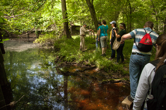 “I’d like to see this little bit of property go back to old growth,” Carter said, referring to a type of forest that has evaded unnatural changes for a century or two. Carter and his wife purchased their property when he finished graduate school in 1966. For 35 years, Carter worked as a fish biologist with the Maryland Department of Natural Resources (DNR). Now, he offers informal tours to naturalists, native plant societies and school groups, carrying along a walking stick that effectively points out the things visitors might not notice.